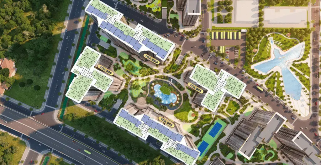Các tiện ích này tạo nên môi trường sống thoáng mát, nhiều mảng xanh, phù hợp cho việc thư giãn, vận động và gắn kết gia đình.