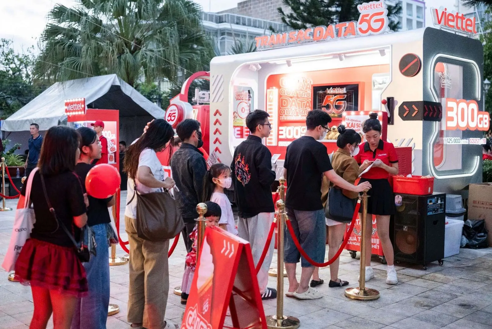 Chuyến xe 5G Viettel – Data quá trời, xài hoài hổng hết xuất hiện với diện mạo hiện đại, trẻ trung và đậm chất công nghệ. Đây không chỉ là một điểm bán hàng lưu động thông thường, mà là hành trình đem công nghệ kết nối đến tận tay kháchhàng, kết hợp trải nghiệm số – giải trí – mua sắm trong một không gian sinh động đầy sắc đỏ Viettel. Xe 5G được hình tượng hoá như một “trạm sạc data” đem đến cho khách hàng miền Tây kết nối siêu tốc với các gói cước dành riêng cho khu vực như SD125T có tới 300 GB/tháng (10GB/ngày).