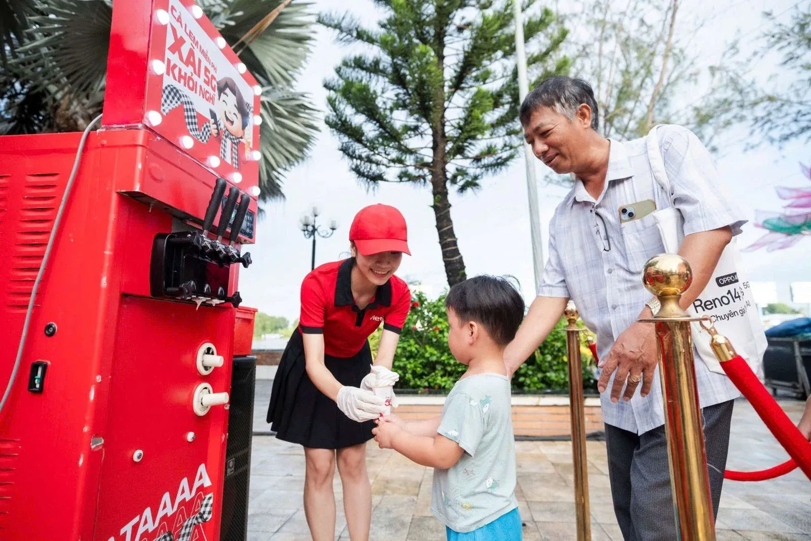 Khách hàng hào hứng khi được tặng kem, túi xách của chương trình: